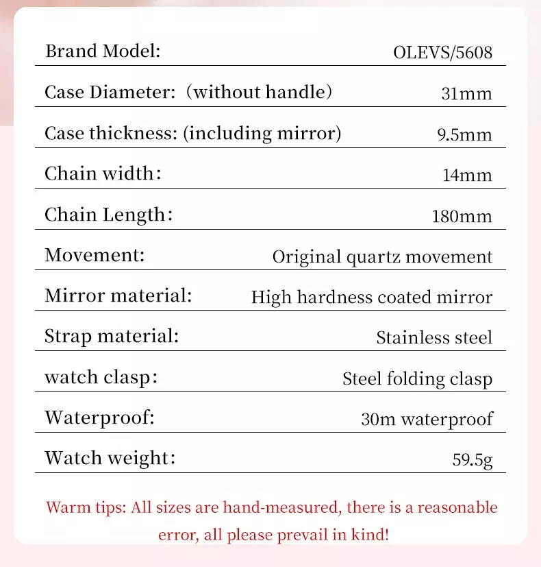 【Movement】:Japanese quartz movement, accurate time!